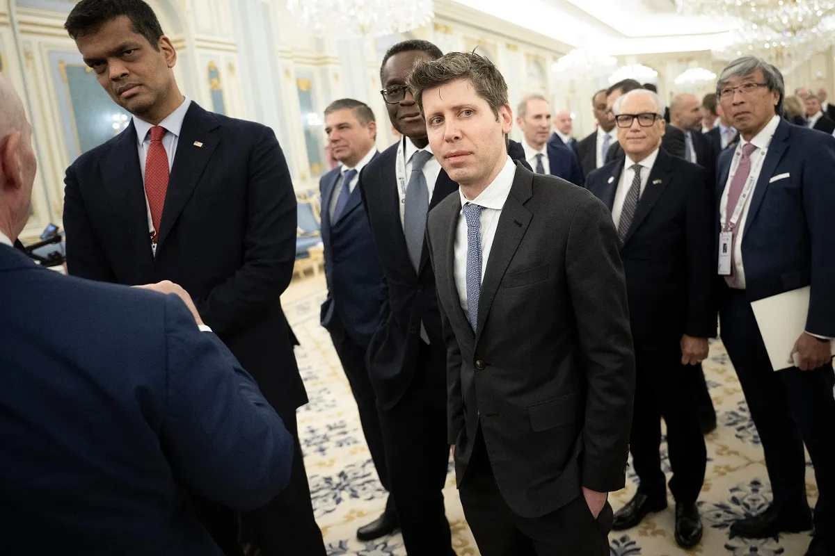 Sam Altman, le PDG d'OpenAI (C), et Patrick Soon-Shiong, président exécutif d'ImmunityBio (R), attendent de rencontrer le prince héritier saoudien au Palais Royal à Riyad le 13 mai 2025. (Photo de Brendan Smialowski / AFP) <em>Image : BRENDAN SMIALOWSKI/AFP via Getty Images</em>